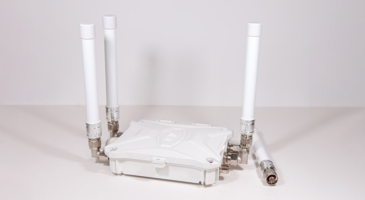 For example, when using an outdoor router on the caravan roof, we need to reduce the router height and keep antennas in the vertical direction. Using the right-angle connector adapter allows the router to be installed horizontally and keeps the antennas vertical. The total height becomes 232mm only.